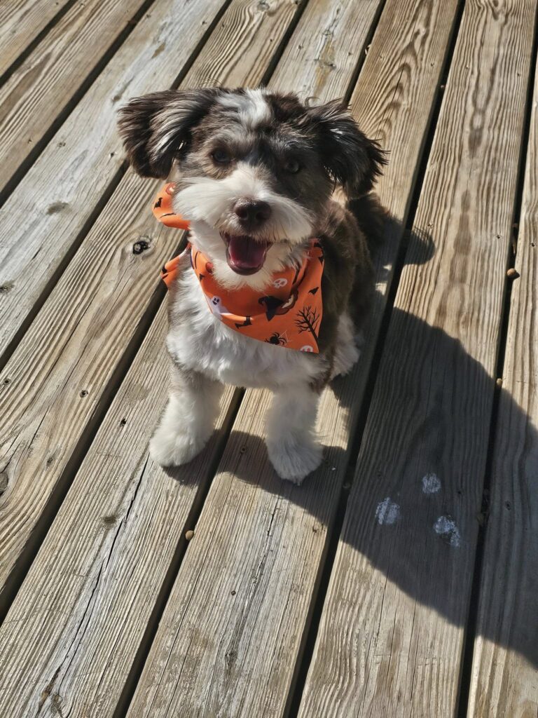 • Create a Safe Zone: The constant doorbell ringing and strangers in costumes can stress even the gentlest pets. Set them up in a quiet room with their bed, toys, and some calming music.