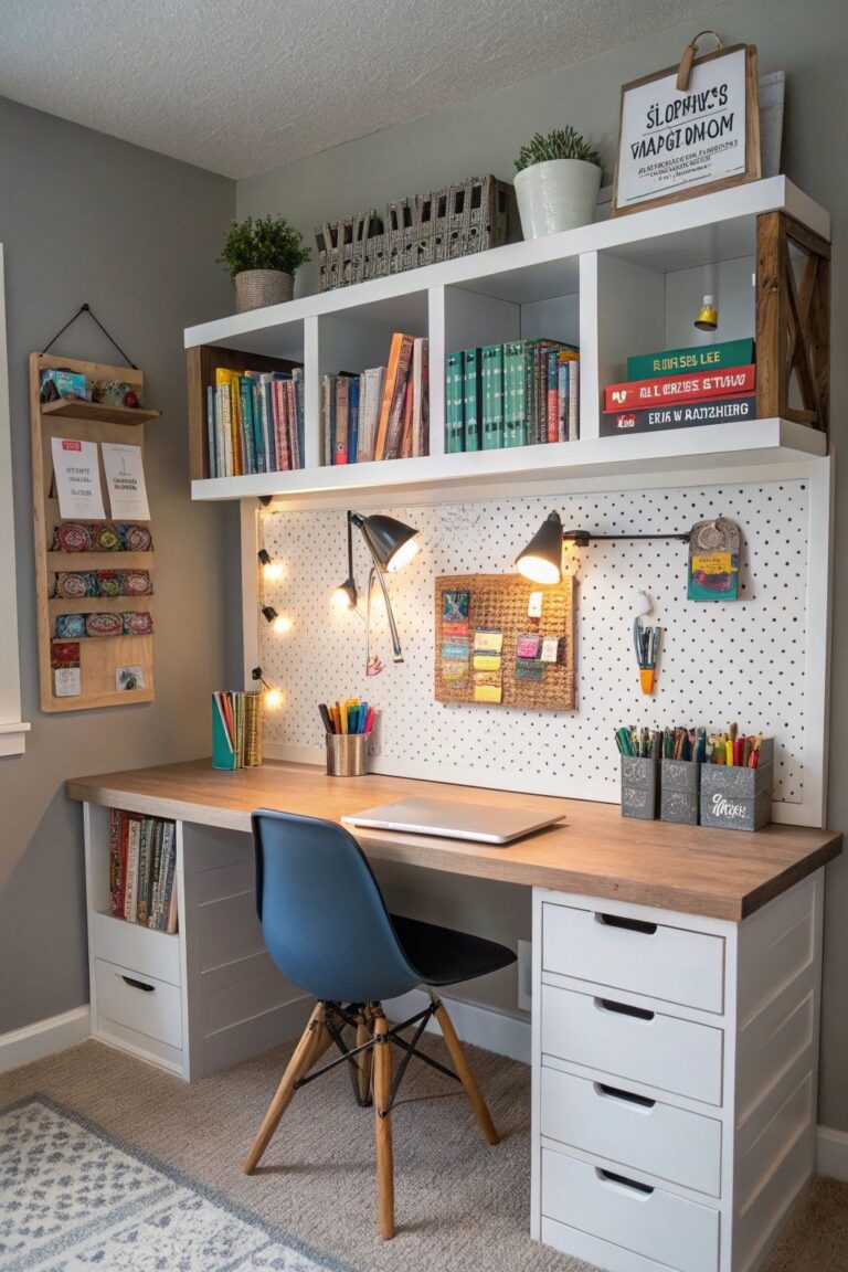Accessorize: Add small buckets for pencils, hooks for scissors, and shelves for books.